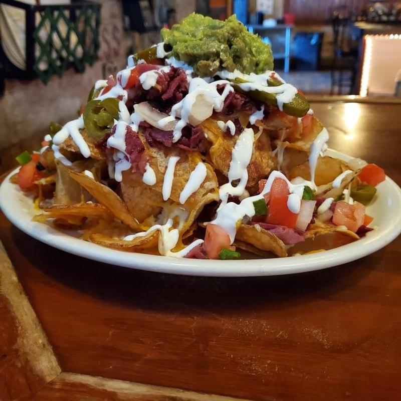 Corned beef, cheddar & jack, sour cream, pico de gallo, guacamole, and fresh jalapeños piled on fresh-made kettle chips