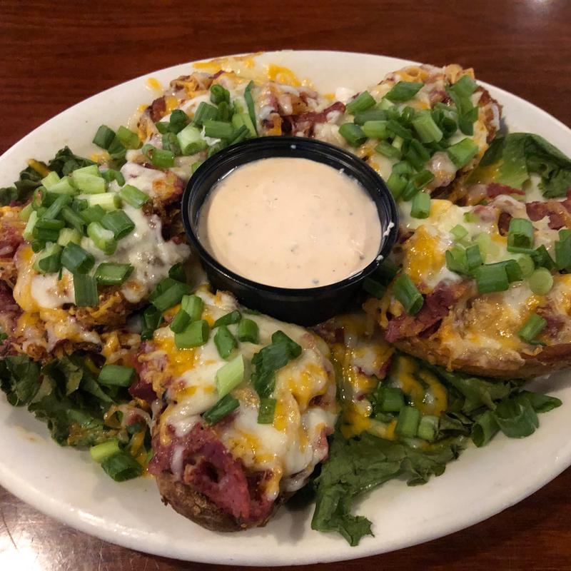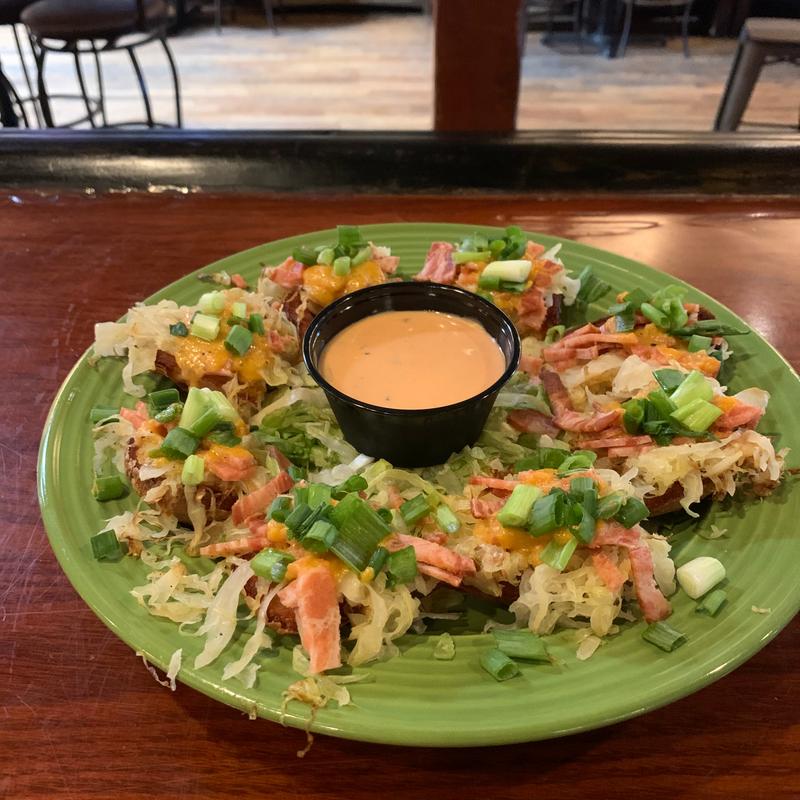 Corned beef, sauerkraut, green onions, cheddar & jack with Marie Rose in crispy potato boats