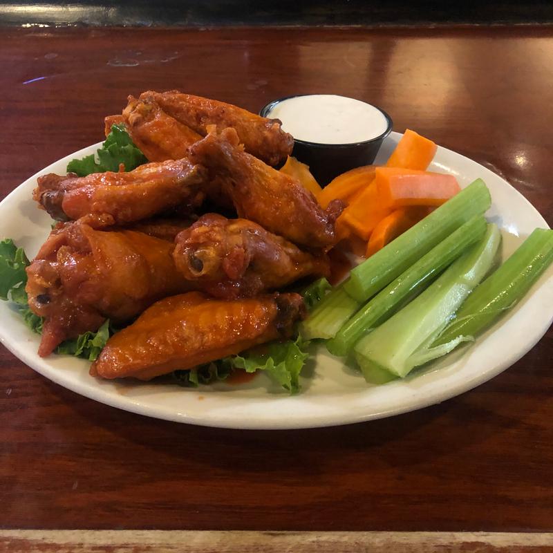 10 jumbo wings tossed in buffalo, angry Korean, spicy bourbon, teriyaki, BBQ, honey sriracha, honey mustard, or Cajun dry rub. Served with carrots, celery, and ranch or blue cheese | Half Order $8
