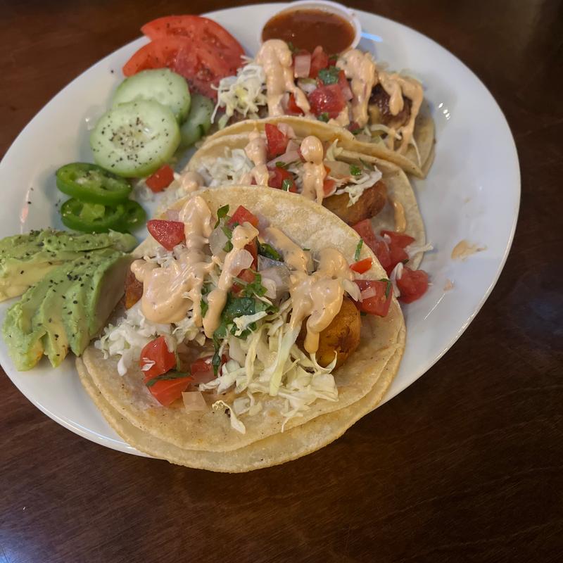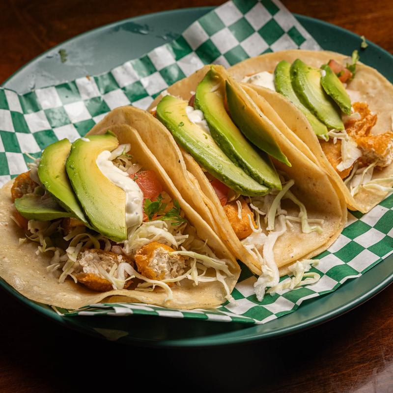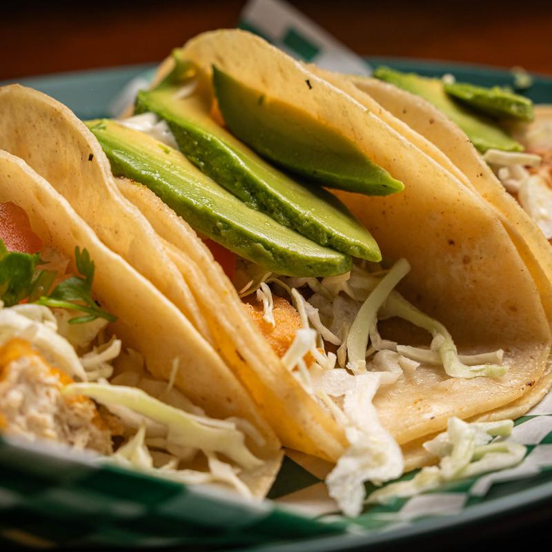 Hand-battered cod, avocado, chipotle crema, pico de gallo, and shredded cabbage in grilled corn tortillas