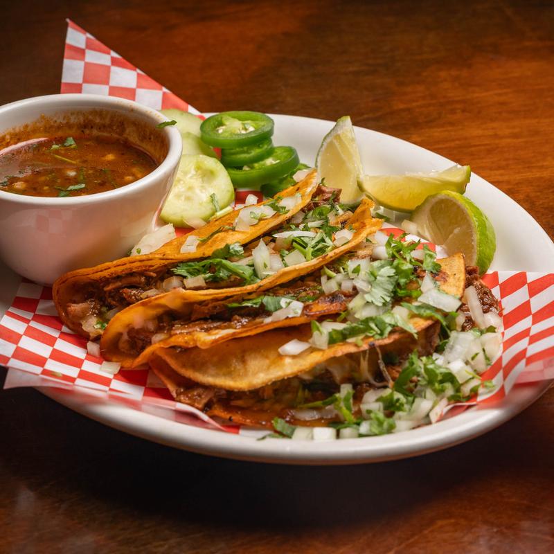 Slow-roasted beef shoulder birria, melted cheese, and cilantro & onions in corn tortillas. Served with consommé for dipping.