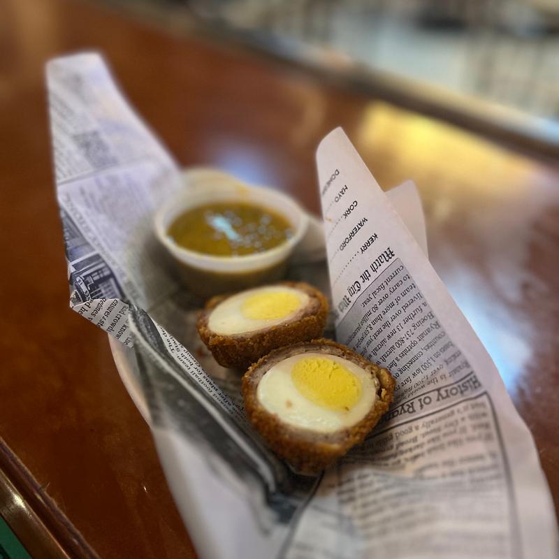 Hard-boiled eggs, hand wrapped in ground sausage, breaded and deep-fried. Served with Guinness mustard $10 | Half Order $6