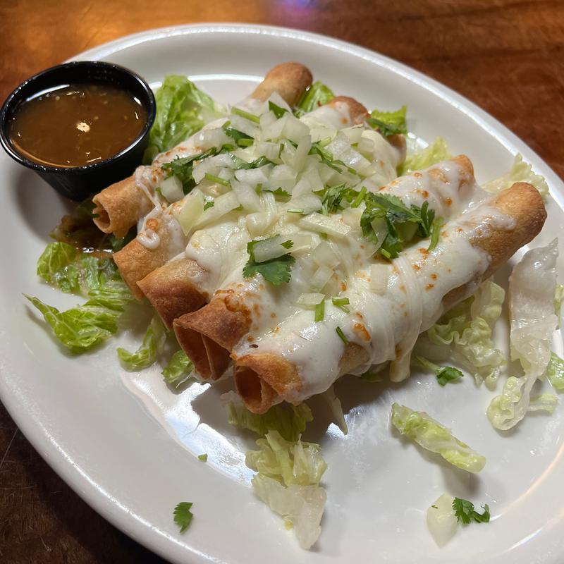 5 hand rolled tacos filled with grilled chicken breast topped with cheddar, guacamole, and salsa