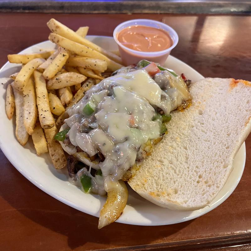Sirloin grilled with red & green peppers, mushrooms, onions, and Swiss on a hoagie roll*